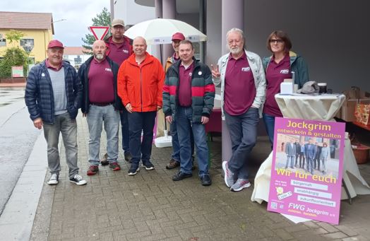 Die FWG stellt im neuen Gemeinderat der Ortsgemeinde Jockgrim 4 der insgesamt 24 Sitze. Als FWG-Mitglieder werden sich zukünftig Helmut Gurlin, Bernd Raabe, Manfred Werling und Michaela Böhner (als Nachrückerin für den vom neuen Gemeinderat zum 2. Beigeordneten gewählten Heiko Böhner) für die Belange unserer Bürgerinnen und Bürger einsetzen.